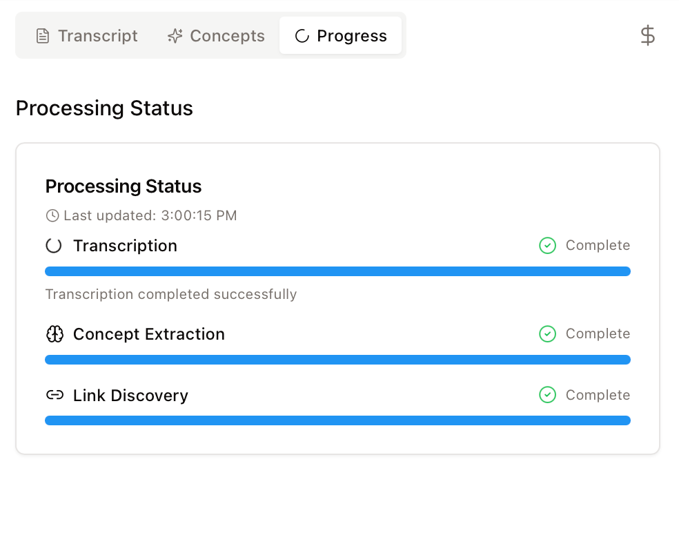 The first version had a very elaborate DB design with extracted concepts and tracking topics across episodes and shows. Dropping it was an essential pivot.